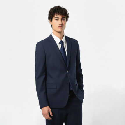 64% poliéster/34% viscose/2% elastano. Forro 100% poliéster taffeta. Casaco 2 botões. 2 bolsos com detalhes à frente com pala. 1