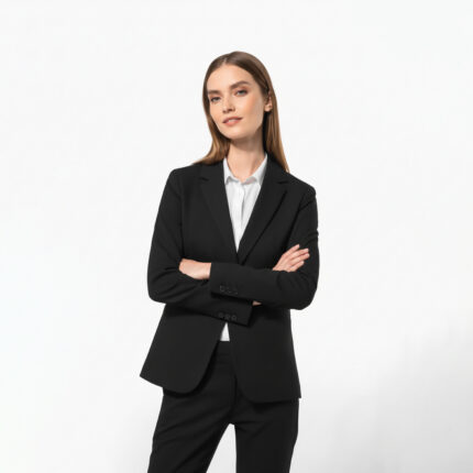 64% poliéster/34% viscose/2% elastano. Forro 100% poliéster taffeta. Casaco 1 botão. 2 bolsos frontais com detalhes. 2 bolsos interiores com