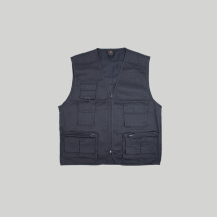 Colete com 11 bolsos; Sarja 65% Poliester 35% Algodão com 200 g. Fecho zipper e anilha de identificação em plástico.